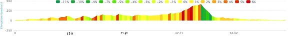 The elevation map of the route where yellow is GOOD and red is cheeky INCLINES.