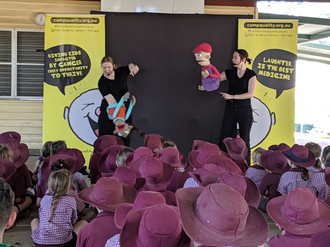 We make a detour to Dungay Primary School and this is where I get it now about what Camp Quality does. We are rolling through sugar beat fields with a head wind and with 500m to go you can hear kids cheering and clapping, we turn into a grass gate to the school and the kids are clapping us in, we dismount and they run up to us high fiving and introducing themselves, it was emotional and mind blowing at the same time. The kids showed us to the BBQ and we refuel and sit back and watch the puppet show. I get it now I really do its was amazing to see and to experience the primary school kids just having fun but being educated about Cancer at the same time. Laughter is the best medicine, the kids loved it, my first puppet show and it was brilliant and a rural school of 84 kids donated $300. They clapped us out of the School, something I will not forget and we headed to the Hotel – DAY 1 of 1000ks 4 Kids was done, nine to go.